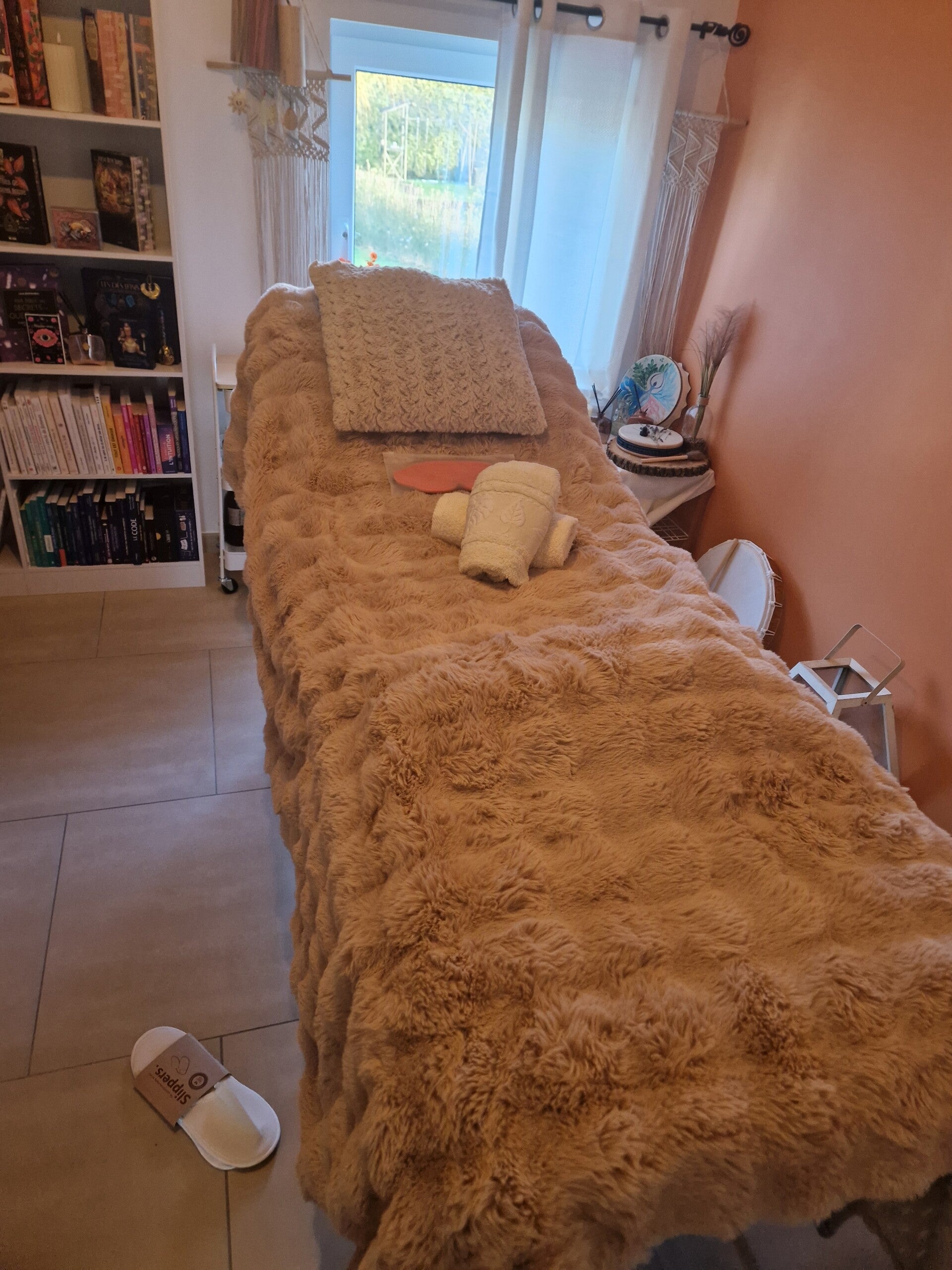 J’accueille les personnes à Andoy, près de Namur, en Belgique, et je propose également des soins à distance.